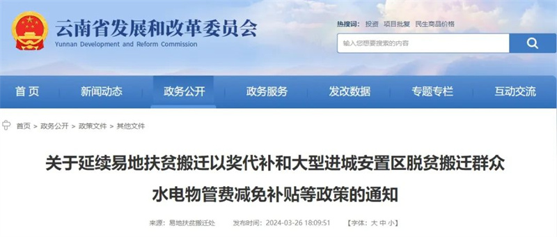 按照党中央巩固拓展脱贫攻坚成果衔接乡村振兴有关要求,为进一步贯彻落实省委、省政府《云南省易地扶贫搬迁“稳得住”工作方案》,报经云南省易地扶贫搬迁工作推进协调小组同意,云南省发展和改革委员会等3部门现就继续执行易地扶贫搬迁以奖代补和大型进城安置区脱贫搬迁群众水电物管费减免补贴(以下简称“减免补贴”)等政策有关事项通知如下: