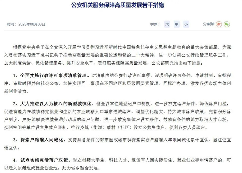 “推动农业转移人口进城落户是推进以人为核心的新型城镇化的关键一环。”亓希国表示,公安部充分发挥人口管理对于人口有序流动的牵引作用,持续深化户籍制度改革。