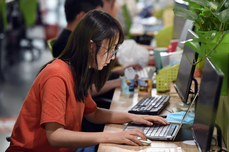 5月12日,今年校招入职的管培生方颖在位于安徽芜湖市的三只松鼠股份有限公司工作。自2月9日复工以来,三只松鼠股份有限公司基于业务持续发展需求,采用直播宣讲、视频面试等线上方式进行招聘,通过纯在线面试录用的应聘者占比超过70%。部分获聘应届毕业生已经入职工作。新华社发 周牧 摄