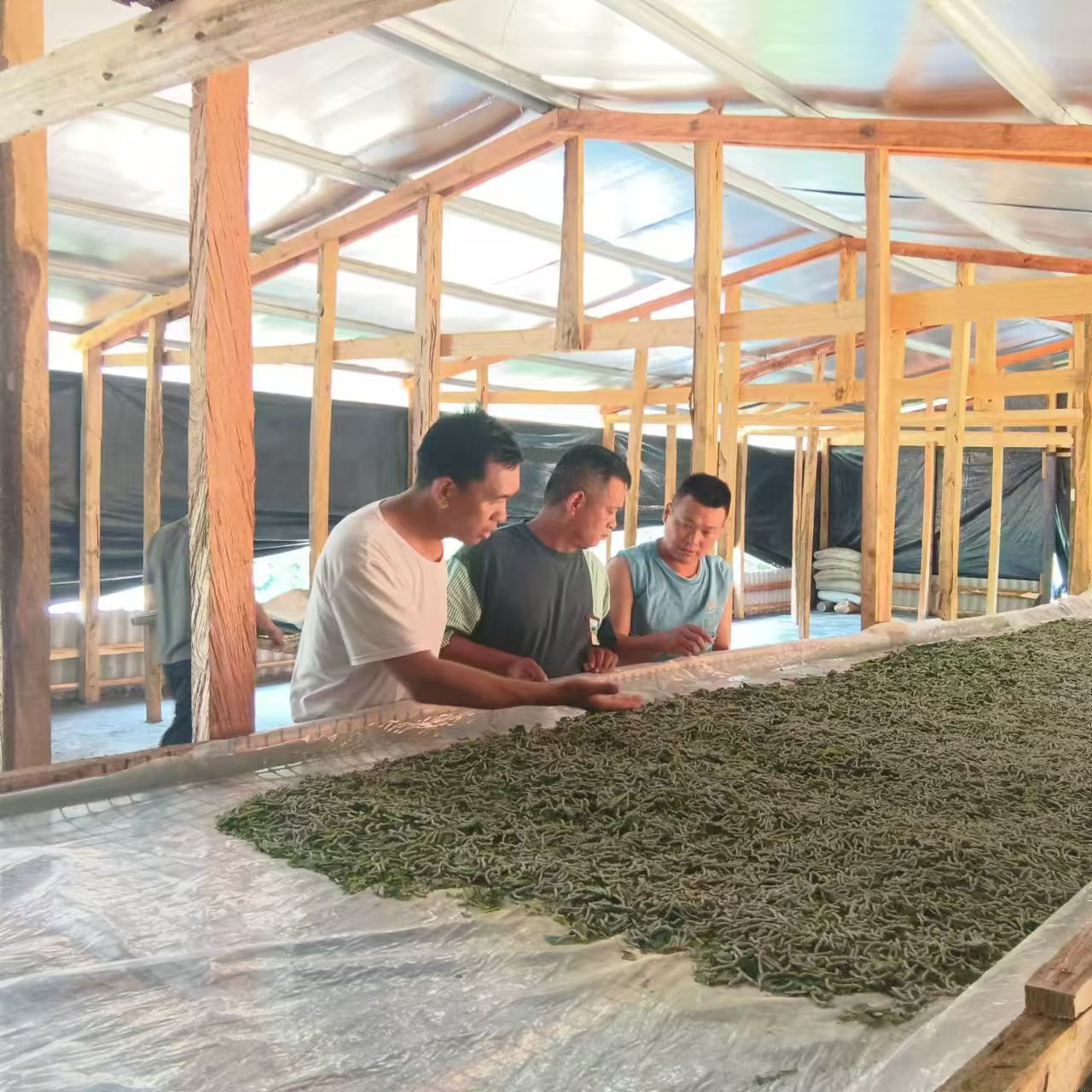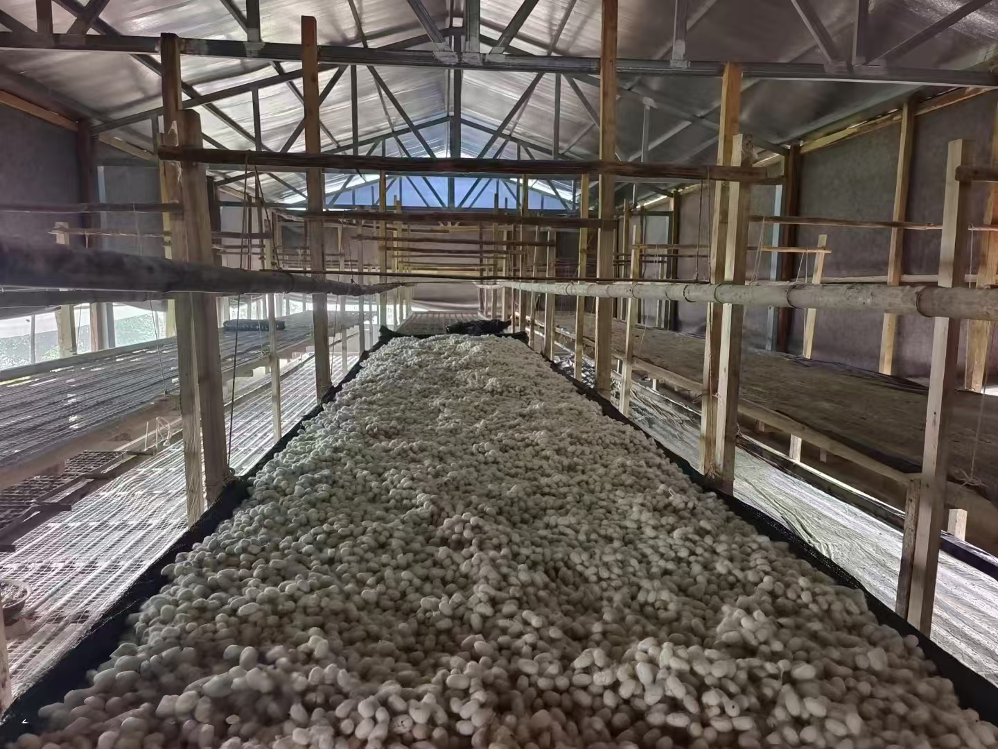 走进蚕桑养殖基地,一排排整齐的蚕架上,密密麻麻的蚕宝宝正在尽情地啃食着桑叶,它们白胖的身躯在翠绿的桑叶间蠕动,仿佛是在奏响一曲生命的乐章。养殖户们穿梭其中,脸上洋溢着幸福的笑容,精心地照料着这些小家伙们。“刚开始养蚕时不懂技术,蚕的成活率、结茧率不高,收入也不高。后来通过不断学习,了解先进的养殖技术和管理技术,慢慢地蚕茧的产量实现了大幅增长,今年的收入早已突破十万元大关。而且参加种桑养蚕大赛还获奖了嘞。”村民早财高兴地说到。据了解,2024年劈石村年养蚕收入超过10万元的农户就有3户,荣获德宏州“正信杯”高效种桑养蚕大赛两个奖项。劈石村高岩村民小组党支部书记早财同志荣获个人能手奖三等奖,劈石村鲁苗村民曹大荣同志荣获高产高效奖,大大激励着群众种桑养蚕的积极性。