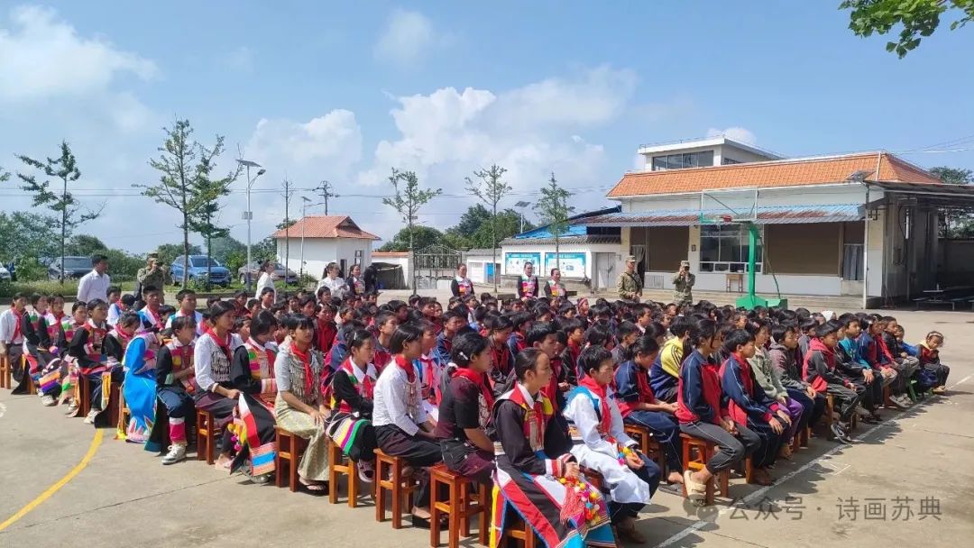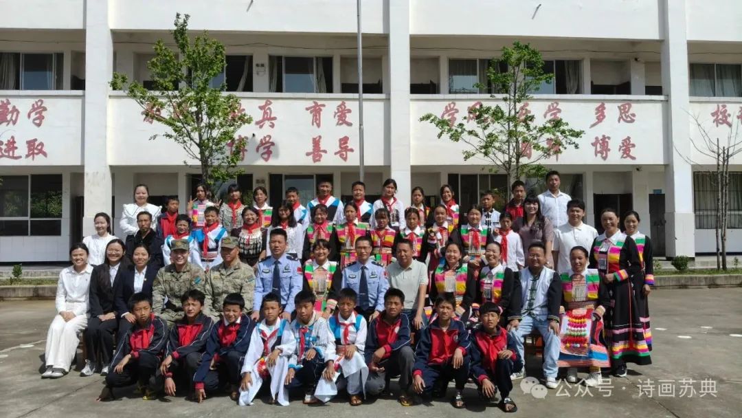 随着新毕业季的来临,苏典乡高度重视青少年学生的成长与发展,致力树立广大青少年学生的正向目标与理想信念,为他们的健康成长保驾护航,启迪初心。6月5日,苏典乡宣传工作人员携手畹町边检站驻苏典分站的边检警察以及茅草村空军部队驻地的官兵们,共同走进了苏典乡达嘎塘完全小学,参与六年级学生的毕业照拍摄活动,并借此契机开展了一场别开生面的树立理想信念主题活动。