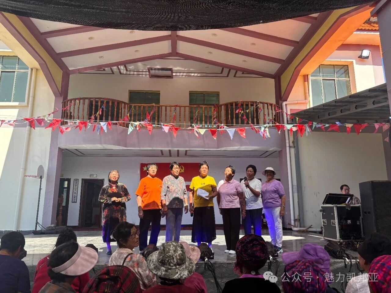 活动中还开展了文艺汇演,各环节精彩纷呈,现场掌声此起彼伏。活动在欢快的大合唱《夕阳红》中拉开帷幕,悠扬的歌声瞬间点燃现场氛围。老年舞蹈队带来的《没有共产党就没有新中国》队员们身着艳丽服饰,动作整齐划一,展现出老年人的活力与风采。老人们自由改编的《铜壁关乡欢迎您》、口技等韵味十足展现出了铜壁关乡的地域风情和人文魅力,表达了老年人对生活的热爱与对美好时代的赞颂。
