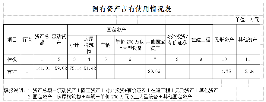 截至2019年12月31日,盈江县卡场镇中心卫生院资产总额141.01万元,其中,流动资产59.08万元,固定资产75.14万元,对外投资及有价证券0万元,在建工程0万元,无形资产4.75万元,其他资产2.04万元(具体内容详见附表)。与上年相比,本年资产总额减少37.06万元,其中;固定资产减少0.81万元,处置房屋建筑物0平方米,账面原值0万元;处置车辆0辆,账面原值0万元;报废报损资产0项,账面原值0万元,实现资产处置收入0万元;出租房屋0平方米,账面原值0万元,实现资产使用收入0万元。