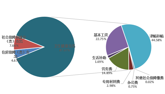 2.卫生健康(类)支出193.42万元,占一般公共预算财政拨款总支出的87.67%;主要用于职工工资福利支出、单位日常公用经费、村医补助、基本公共卫生服务支出。
