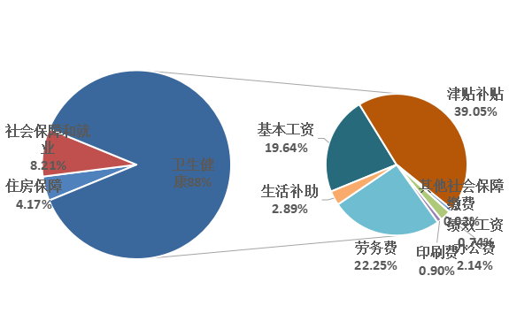 2.卫生健康(类)支出132.26万元,占一般公共预算财政拨款总支出的87.62%,主要用于职工工资福利支出、单位日常公用经费、村医补助、基本公共卫生服务支出。