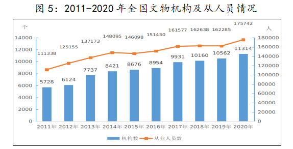 2020年末,全国文物机构藏品5089.10万件/套,其中,博物馆文物藏品4319.09万件/套,占文物藏品总量的84.9%。