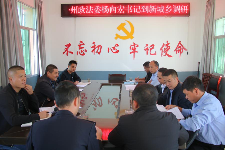 12月9日下午,州委常委、政法委书记杨向宏带队到新城就外籍人员管控及毒品滥用问题重点整治工作进行调研,县委常委、县委政法委书记杨斌、县公安局相关人员陪同调研。