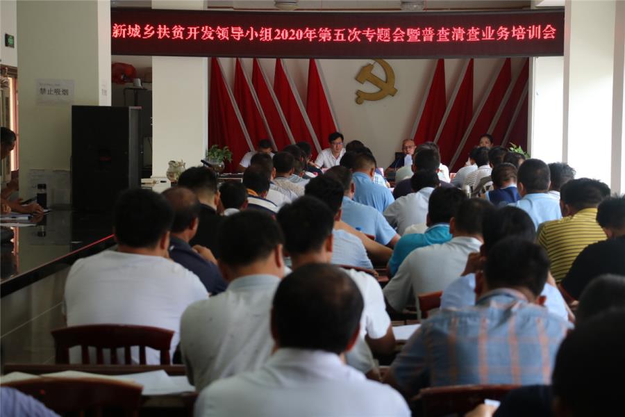 7月6日下午,新城乡在乡政府大会议室召开扶贫开发领导小组2020年第五次专题会暨普查清查工作推进会,县委常委、副县长胡永青、县级各挂钩单位负责人、乡班子成员、全乡干部职工、驻村工作队全体人员、各村“两委”工作人员共120余人参会。
