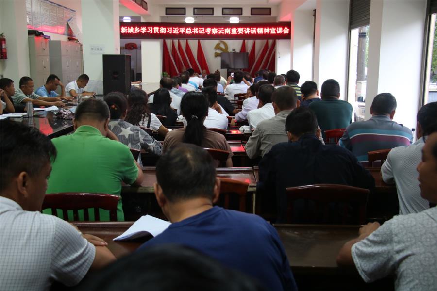 为深入宣传贯彻习近平总书记考察云南重要讲话精神,新城乡于8月3日到10日期间在全乡各村组组织开展宣讲活动,由挂村领导、驻村工作队员深入村寨开展多形式宣讲,在全迅速掀起学习习近平总书记考察云南重要讲话精神高潮。