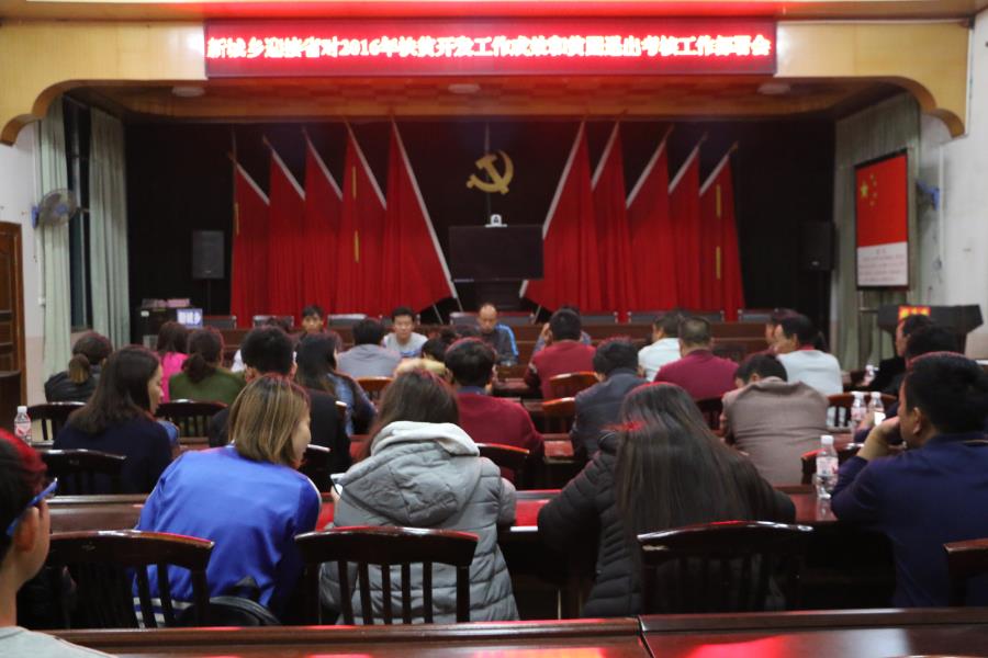 新城乡为保障建档立卡户如期脱贫退出考核,在前期工作中扎实推进各项扶贫开发工作,3月8日下午,新城乡召开迎接省对2016年扶贫开发工作成效和贫困退出考核工作部署会,会议由乡人大主席杨茂盈主持,乡全体干部职工,三个贫困村村三委、人大代表和党代表、驻村工作队90余人参加会议。
