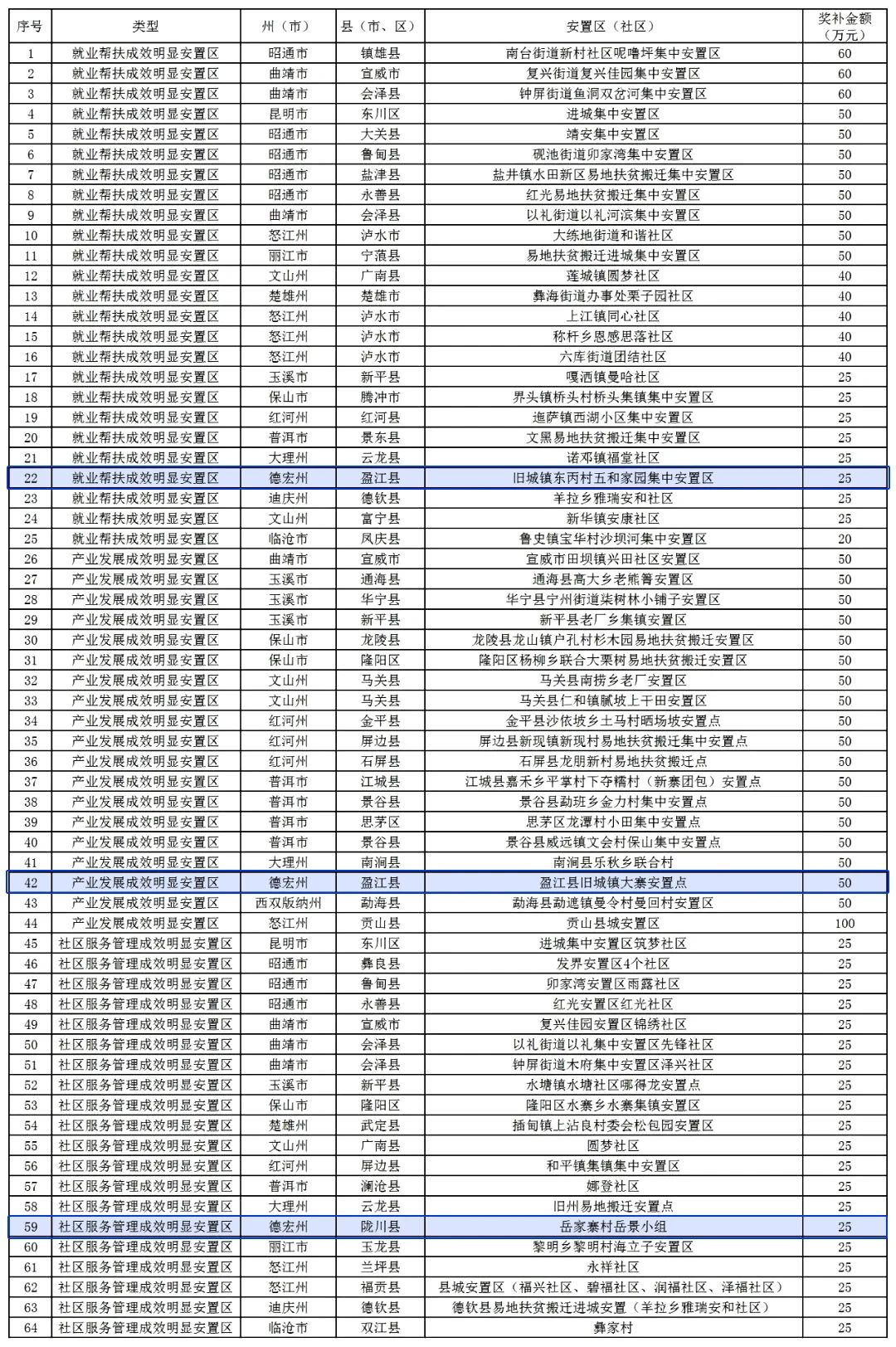 近日,省发展改革委、省财政厅等五部门联合印发《关于下达2025年度易地扶贫搬迁后续扶持以奖代补项目计划的通知》,对在易地扶贫搬迁后续扶持就业帮扶、产业发展、社区服务管理等方面成效明显的安置区进行奖补。此次省级以奖代补资金共5000万元,实施以奖代补项目88个,可惠及16个州(市)52个县(市、区)101个安置区(点),受益的搬迁群众超过35万人。
